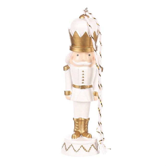 Dotaz na produktFigurka vojáka s provázkem na pověšení ve své bílo-zlaté uniformě, vám přinese do domova neotřelou vánoční atmosféru plnou elegance a šarmu. Jeho půvabná postava stojící v pozoru na kulatém stupínku okouzlí každého pozorovatele a dodá vašemu prostoru jedinečný a nadčasový vzhled. Zlaté detaily, jako jsou boty, knoflíky a spodní část klobouku, nejenže podtrhují jeho noblesu, ale také dodávají této figurce zvláštní punc, kterým zaujme a obohatí váš vánoční interiér. Buďte nápadití a prokažte své originální myšlenky v praxi a nechte vystavit obdivu tuto nádhernou figurku vojáka, která upoutá zraky všech návštěvníků.