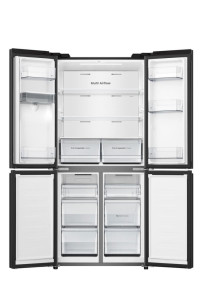 Dotaz na produkt Na splátky ještě dnesČtyřdveřová Cross Door lednice Hisense RQ5P470SMFE s velkým objemem 482 l, v černé barvě a energetickou třídou E. Díky promyšlenému vnitřnímu uspořádání se v ní snadno udržuje přehled a potraviny zůstávají déle čerstvé. Flexibilní zóna umožňuje měnit nastavení teploty podle aktuálních potřeb – ať už potřebujete více prostoru pro chlazené, nebo mražené potraviny. Tři nezávislé chladicí okruhy udržují stabilní teplotu a zabraňují šíření pachů mezi oddíly. lednice pracuje tiše, rovnoměrně a s minimální spotřebou energie. Praktický dávkovač vody bez nutnosti napojení na vodovod poskytne osvěžení kdykoliv během dne. Díky přehlednému ovládání a možnosti připojení k aplikaci máte kontrolu nad chodem spotřebiče i na dálku.