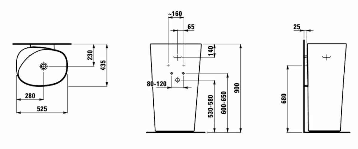 Volně stojící umyvadlo Laufen Palomba 52,5x43,5 cm bez otvoru pro baterii H8118040001091