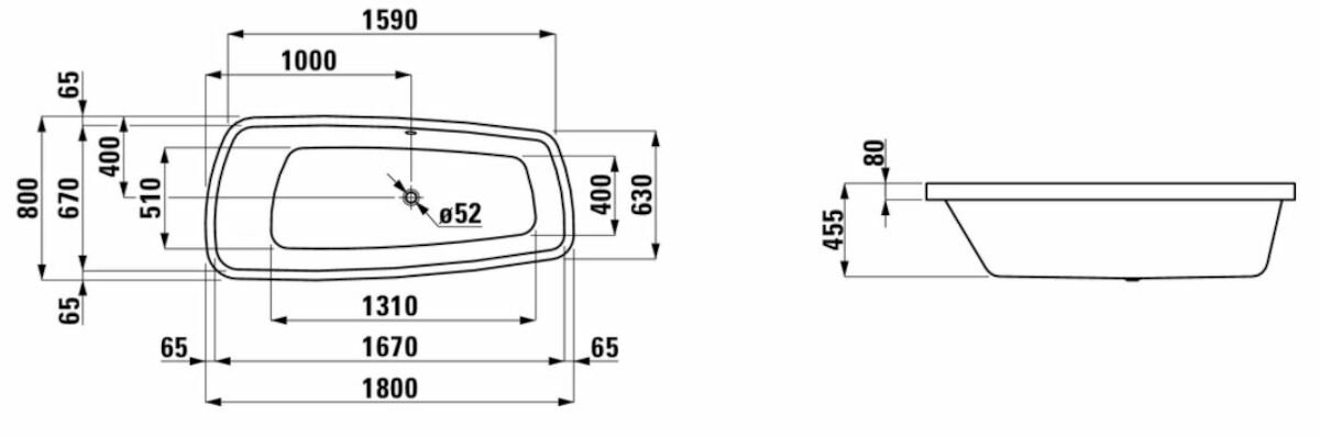 Volně stojící vana Laufen Palomba 180x80 cm akrylát H2438000000001