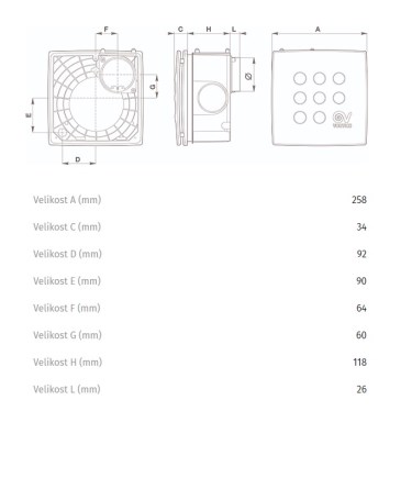 - možnost napojení bočního přisávání (odtah ze 2 místností současně) pomocí vyústky s pr. 80 mm a napojovacích otvorů předvyražených na skříni ventilátoru