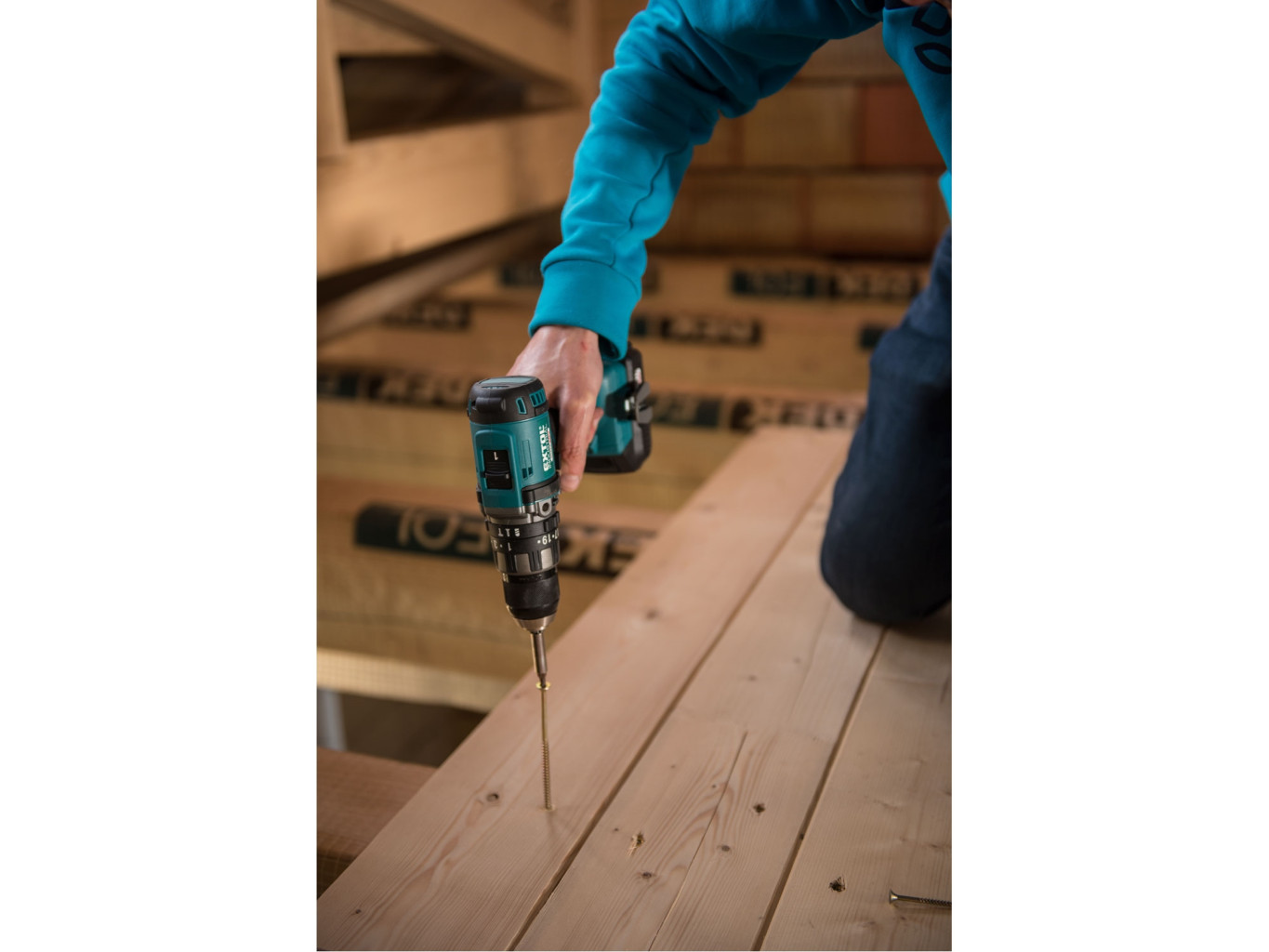 Dotaz na produkt Na splátky ještě dnesLehký a výkonný dvourychlostní vrtací aku šroubovák s příklepem Vám poskytuje vysoký vrtací výkon při vrtání do široké škály materiálů – ocel, kovy, dřevo, plast, ale s příklepem také do zdiva. Je určen pro náročné práce a díky svému příjemnému designu se s ním velmi dobře pracuje i při dlouhodobém používání. Vrtačka je poháněná nejmodernějším „brushless" motorem. Tento nový typ motoru má vyšší životnost, je výkonnější a má menší spotřebu el. energie než klasické motory s uhlíkovými kartáči. Celokovová převodovka s 5ozubenými kolečky je speciálně navržena pro vysoký kroutící moment a zajišťuje bezchybný chod i při vysoké zátěži. Vrtáky se upínají do kvalitního celokovového sklíčidla s aretací. Díky plynulému nastavení momentů, lze využít celý rozsah stupnice a nejen vyznačených 20 stupňů. Vrtačka má 3 režimy práce: vrtání, šroubování a vrtání s příklepem. Mechanický příklep je vynikající pro vrtání do tvrdších materiálů. Integrovaná LED svítilna umístněná na spodní části rukojeti osvětluje pracovní prostor a pro zlepšení orientace v tmavých prostorech má zpožděné vypnutí. Pro běžnou práci dostačují jeden nebo dva 2000mAh akumulátory, které můžete rychle nabít v rychlonabíječce, pro náročnější nebo delší práci doporučujeme větší akumulátory s kapacitou 4000–8000mAh. Akumulátor lze použít ve všech typech nářadí řady EXTOL SHARE20V. Díky použité Li-ion technologii je ho možné kdykoliv dobíjet, aniž by se tím snižovala jeho kapacita. Li-ion akumulátor ztrácí energii vlivem samovybíjení velmi pomalu a vydrží dlouho nabitý a připravený k použití.