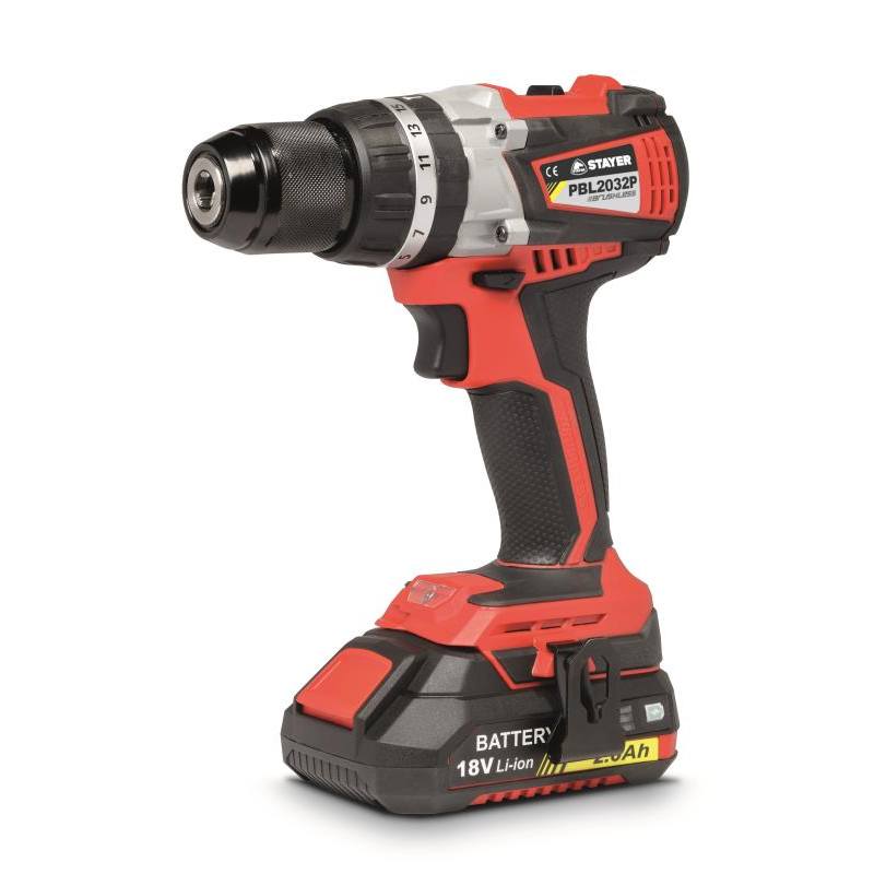 ÚvodDílnaRuční nářadíŠroubovákyVrtačka aku PBL 2032 PK, 18V, bezuhlíková, 2Ah, 2 baterie Li-ion, kufr, STAYER
