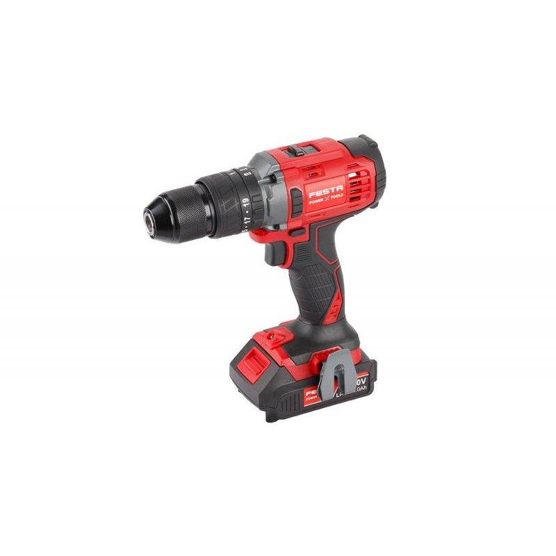 Vrtačka AKU SHARE, 20V, s příklepem, 2.0AH, 2 baterie, kufr, nabíječka, FESTA