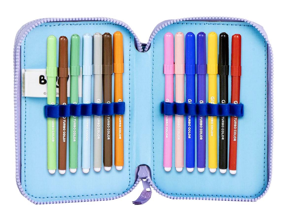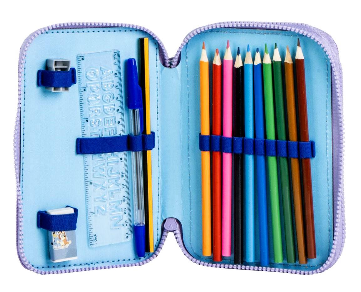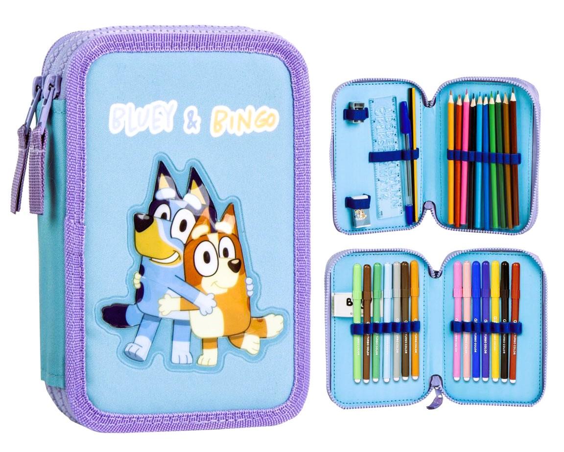 Dvoupatrový penál s výbavou s motivem Bluye. Rozměry: 19,5 x 12,5 x 4,5 cm. Materiál: polyester. Včetně vnitřního vybavení, dle vyobrazení. Výrobce: Cerda. ARTESANÍA CERDÁ, S.L. E-46850 LOleria, Valencia, Spain info@cerdagroup.com