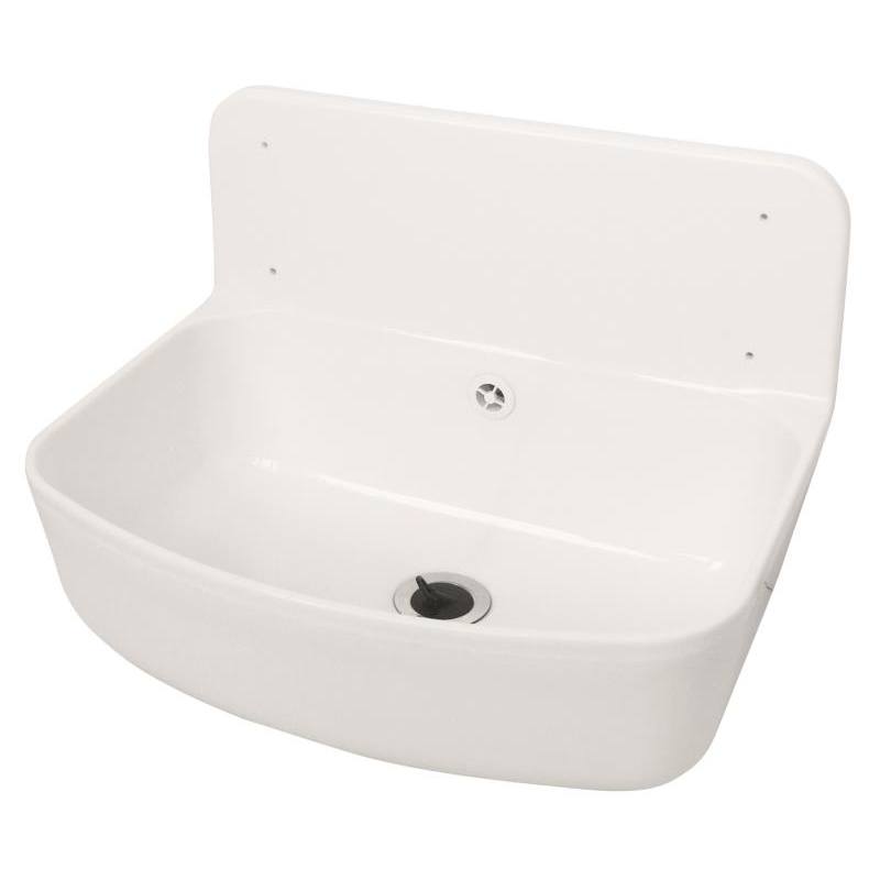 Plastová výlevka pro odtok odpadní vody se sifonem s upevněním na zeďRozměry V x Š: 33 cm x 49,5 cm