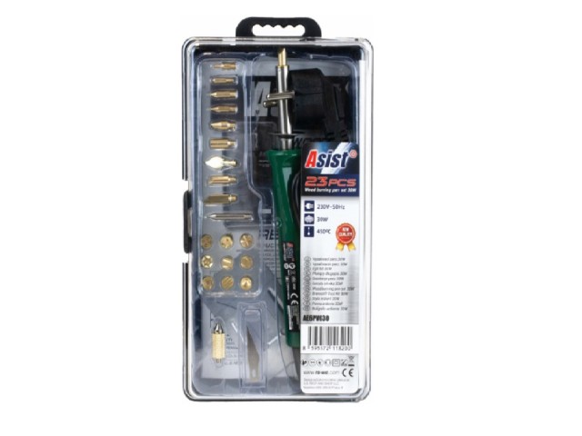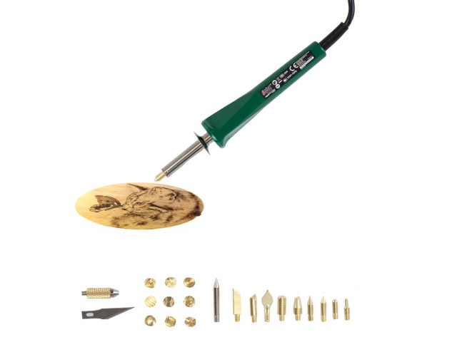 30W, teplota hrotu 450°C, 10ks kreslicích hrotů, 9ks vypalovacích tvarových hrotů, ideální pro vypalování/kreslení do dřeva, korku, kůže, vytvořte svůj dárek, tisíce nápadů za pár kaček.