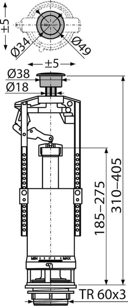 • Konstrukce umožňuje seřízení optimální výšky ventilu dle výšky nádržky