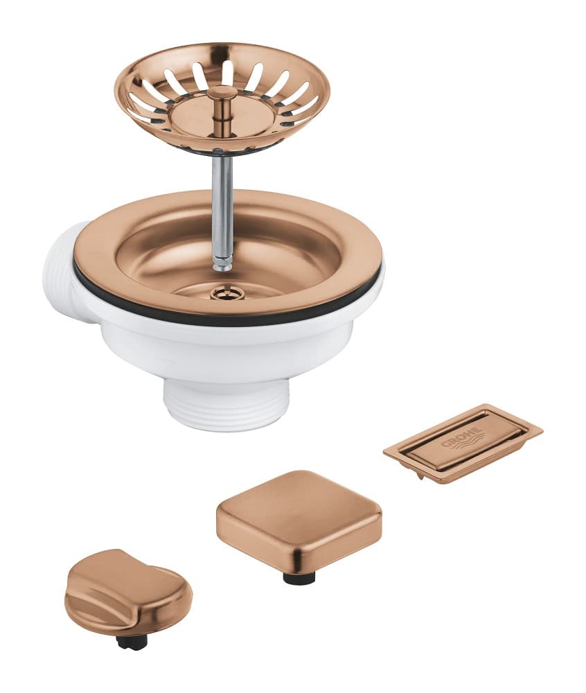 Dotaz na produkt Na splátky ještě dnesSkvělá kombinace sofistikovaného designu a chytré funkčnosti kuchyně! Výsuvná odtoková souprava GROHE s ovládacím knoflíkem dokonale doplní každou stylovou a moderní kuchyni. Odolná povrchová úprava GROHE StarLight využívá fyzikální depozici z plynné fáze (PVD), která je desetkrát odolnější proti poškrábání než běžný chrom. Souprava také skvěle funguje. Odtok se otevírá a zavírá pouhým otočením knoflíku vedle mísy, takže nemusíte dávat ruce do špinavé nebo horké vody! Tato robustní sada je určena pro umyvadlo s automatickým výsuvným odpadem ovládaným pomocí ovládacího knoflíku a má povrchovou úpravu kartáčovaný Warm Sunset, která se dobře hodí k široké škále baterií GROHE, abyste mohli vytvořit jednotný design kuchyně. Můžete si vybrat mezi kulatým a hranatým knoflíkem. Toto nepostradatelné příslušenství se snadno instaluje a je určeno pro širokou škálu kompozitních dřezů GROHE, včetně vybraných dřezů K400, K500 a K700: 31639AP0/AT0, 31640AP0/AT0, 31641AP0/AT0, 31644AP0/AT0, 31645AP0/AT0, 31651AP0/AT0, 31652AP0/AT0. Odtokové soupravy GROHE – povyšují design a harmonii na vyšší úroveň!