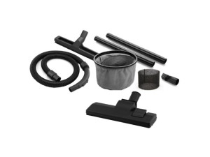 3x plastová trubice (40cm) 1x plastová hadice (1,5m) 1x nástavec na mokré čištění podlah 1x podlahová hubice 1x kombinovaný kartáč 4x kolečka 1x látkový filtr 1x houbový filtr