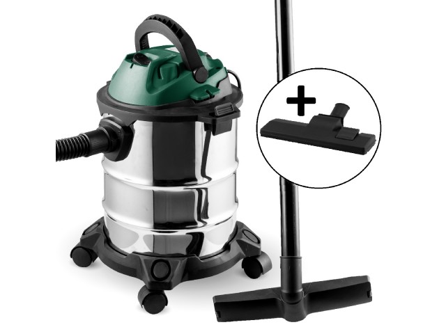 příkon 1200W, nádrž 15L, funkce foukání, kolečka pro snadnou manipulaci, 1x nástavec na mokré čištění podlah, 1x podlahová hubice, 1x kombinovaný kartáč, látkový filtr+ houbový filtr, záruka ASIST 3roky