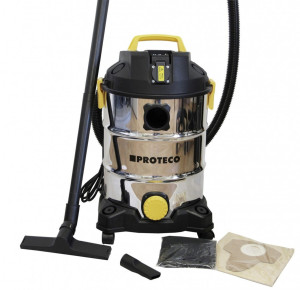 Dotaz na produkt Na splátky ještě dnesPrůmyslový vysavač Proteco díky svému příkonu 1200 W zajistí dokonalý úklid suchých i mokrých nečistot včetně vylitých kapalin. Je pomocníkem při úklidu v domě, v dílně nebo i v autě. Nerezová nádoba pojme až 30 l nečistot. Otvor pro snadnější výpust vody. Rozkládací trubice usnadňuje skladování vysavače. Otočná kolečka s madlem zajišťují skvělou manipulaci s vysavačem. Vysavač má zásuvku pro napájení nářadí do výkonu 2 200 W spínanou elektronicky při zapnutí. Výhody a charakteristické znaky - Ergonomicky tvarovaná rukojeť pro snadné přenášení - Barevné provedení černo-žluté - Na suché i mokré vysávání (musí se vyjmout sáček + skládaný filtr) - Praktická rozkládací trubice - Papírový sáček 1 kus - 4 kolečka pro snadnou manipulaci - Nádoba z nerezové oceli o objemu 30 l - Otvor pro snadnější výpust vody