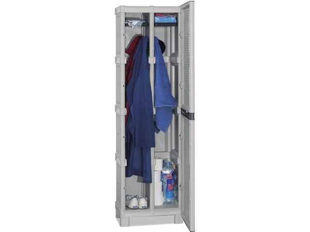 Plastová skříň z modulové řady Concert je vyrobena z polypropylenui který je odoolný vůči povětrnostním podmínkám. Omyvatelná. Ideální do dílny nebo na zahradu.Parametry: Šíře:500 mmHloubka:390 mmVýška:1720 mm (172 cm)