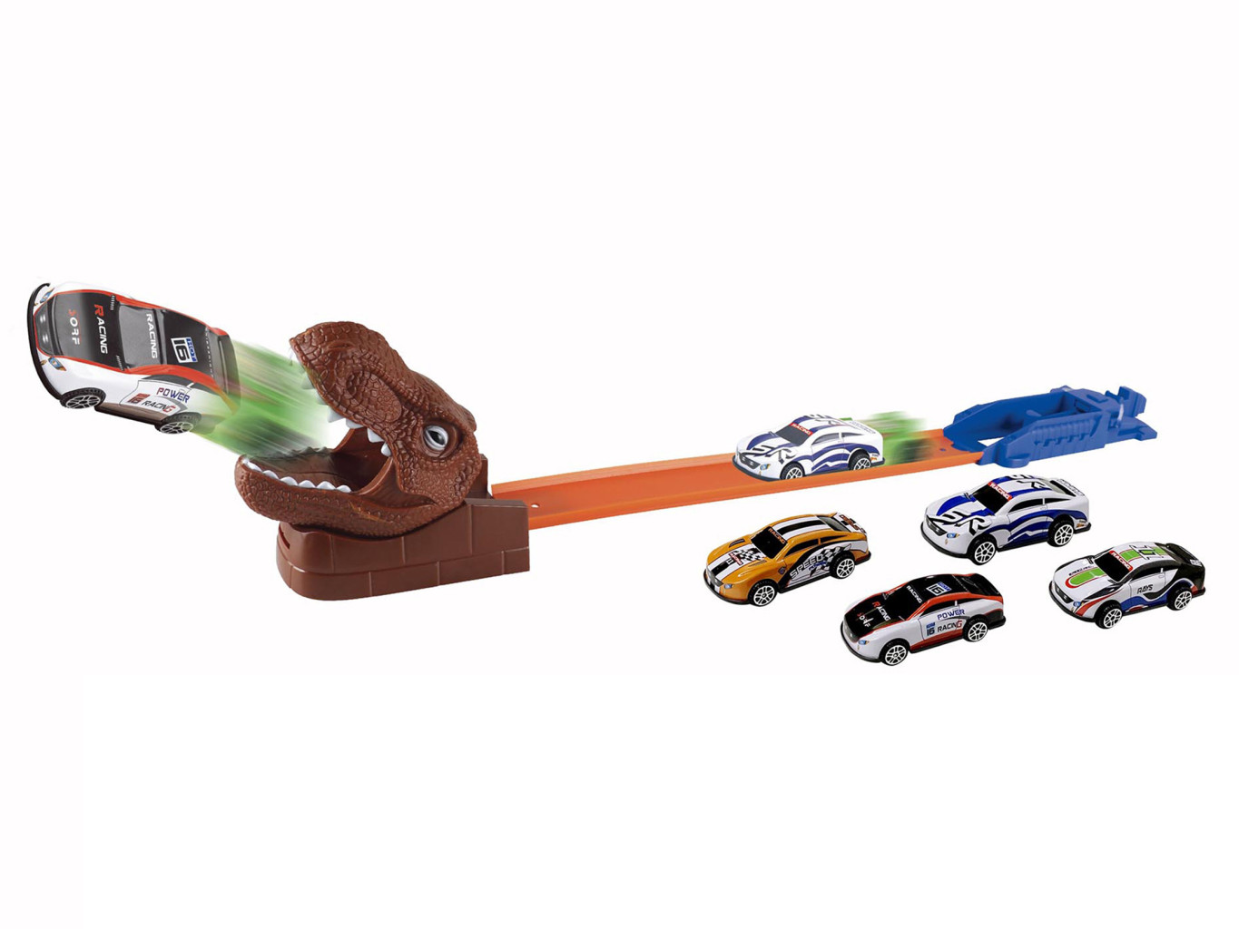 Dotaz na produktVystřelovací dráha dino se 4 auty. 4 kovová auta. Rozměry 45x12x16 cm. Sestavte dle obrázku na zadní straně obalu.