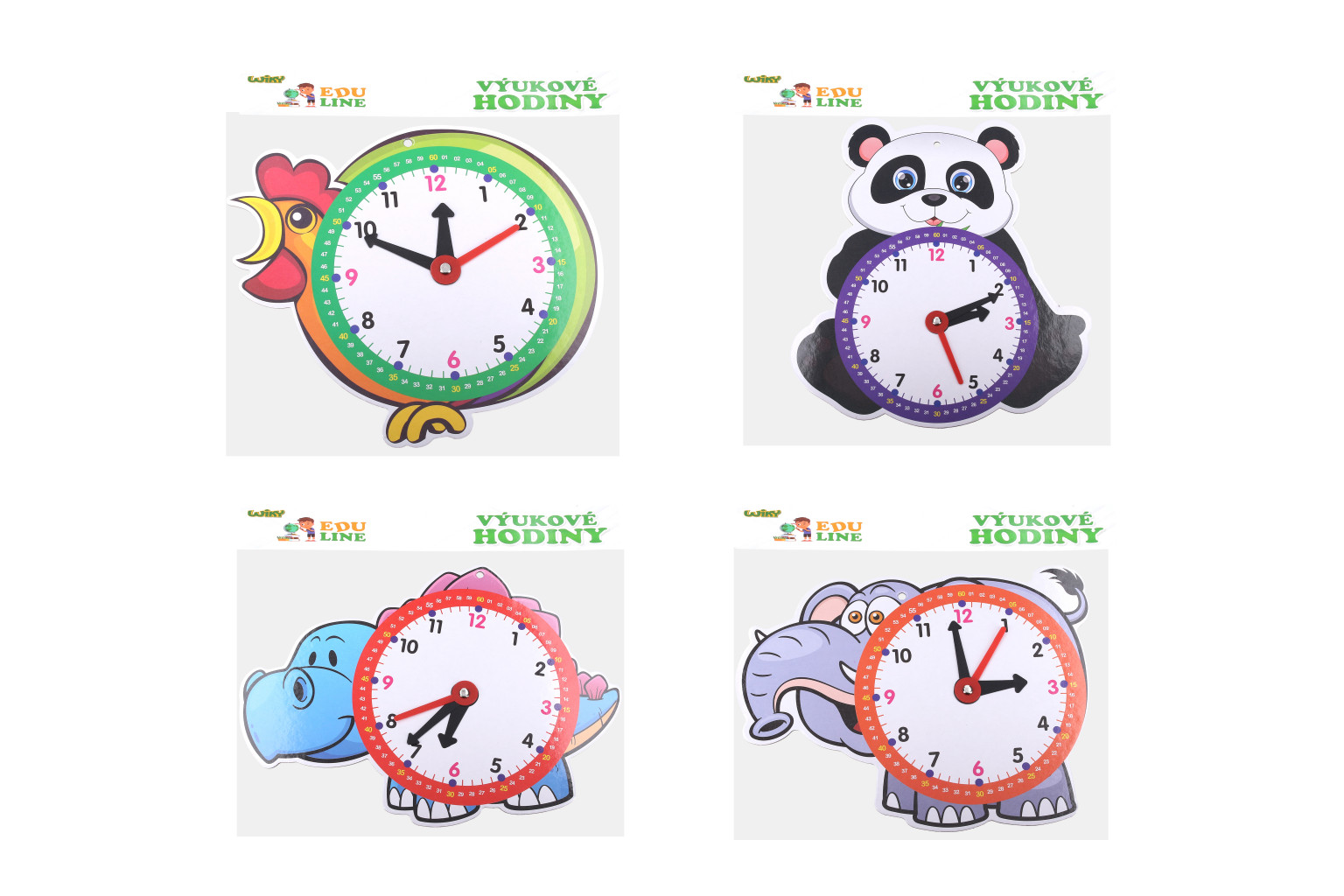 Dotaz na produktVýukové papírové hodiny zvířátka kohout, slon, dinosaurus, panda 4 motivy