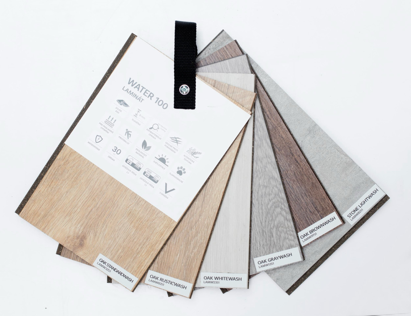 Dotaz na produktVzorník laminátové plovoucí podlahy ze série WATER1 100 Balení obsahuje: