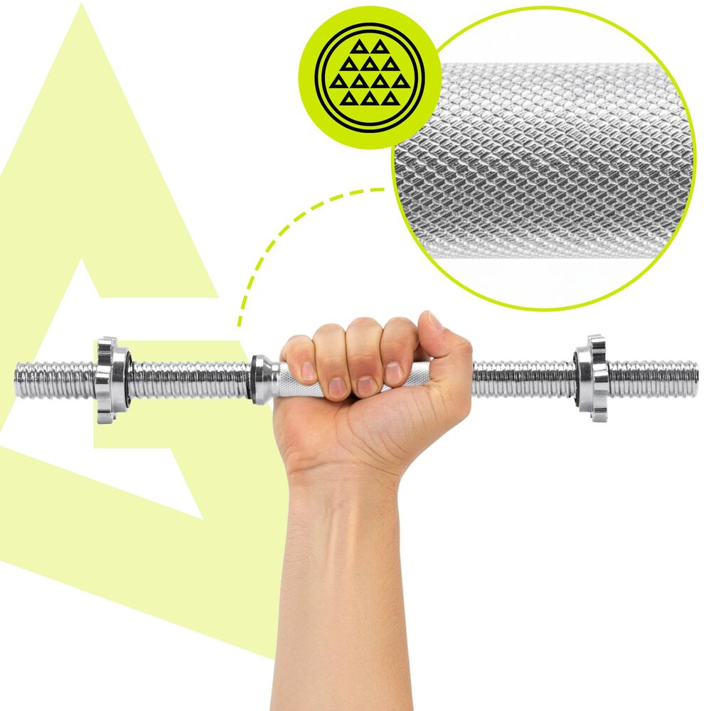 Vzpěračská tyč 48 cm rovná osa 28 mm ACTIGET ACT0003 je ideální volbou pro domácí i klubové cvičení s jednoručními činkami. Je určena pro kotouče s otvorem 28 mm a umožňuje snadno přizpůsobit zátěž podle úrovně tréninku. Protiskluzová drážkovaná rukojeť zajišťuje pevný a jistý úchop i při intenzivním cvičení. Tyč je vyrobena z kvalitní chromované oceli, která je odolná proti opotřebení a korozi. Díky vylepšeným závitovým objímkám zůstávají kotouče bezpečně fixované po celou dobu tréninku.