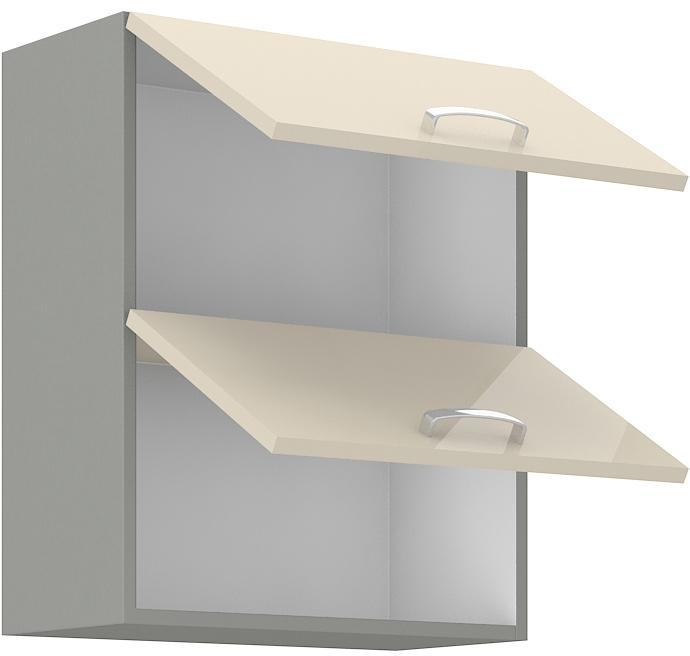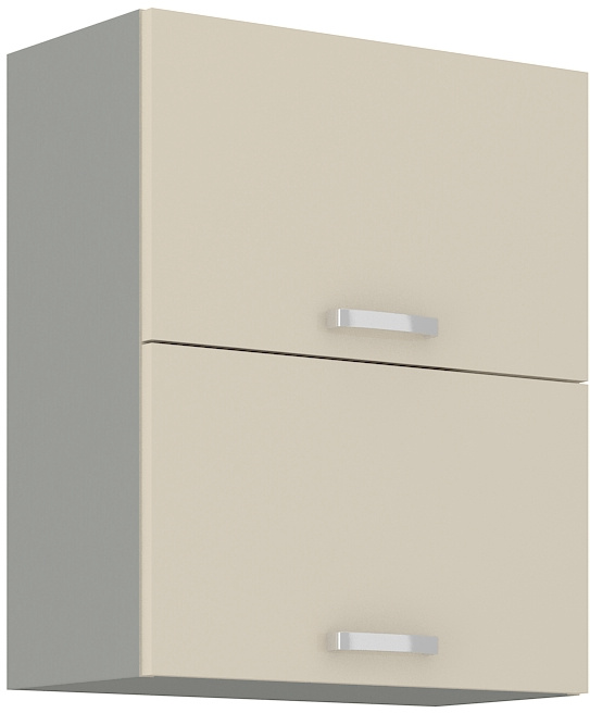 Dotaz na produkt Na splátky ještě dnesHorní výklopná skříňka dvojitá KARMEN vyrobená z kvalitního lamina a MDF. Korpus je v barvě šedá a dvířka v barvě karmen krémová v lesku. Rozměry skříňky - šířka 60 cm, výška 71,5 cm, hloubka 31 cm. Úchyty jsou z kovu. Dvířka jsou pomocí plynových pístů otvíraná nahoru. V naší nabídce naleznete další výběr skříněk k sestavení celé kuchyně.