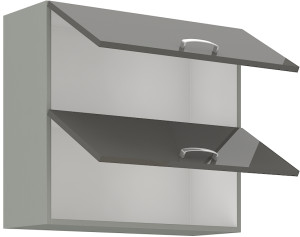 Dotaz na produkt Na splátky ještě dnesHorní výklopná skříňka dvojitá GREY vyrobená z kvalitního lamina a MDF. Korpus je v barvě šedá a dvířka v barvě grey šedá v lesku. Rozměry skříňky - šířka 80 cm, výška 71,5 cm, hloubka 31 cm. Úchyty jsou z kovu. Dvířka jsou pomocí plynových pístů otvíraná nahoru. V naší nabídce naleznete další výběr skříněk k sestavení celé kuchyně.