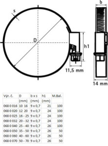 Rozměr upevnění (DN ,M, mm,cm, m, ks,ml,", kg,°C): 16-25 mm