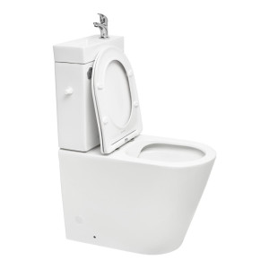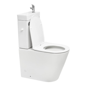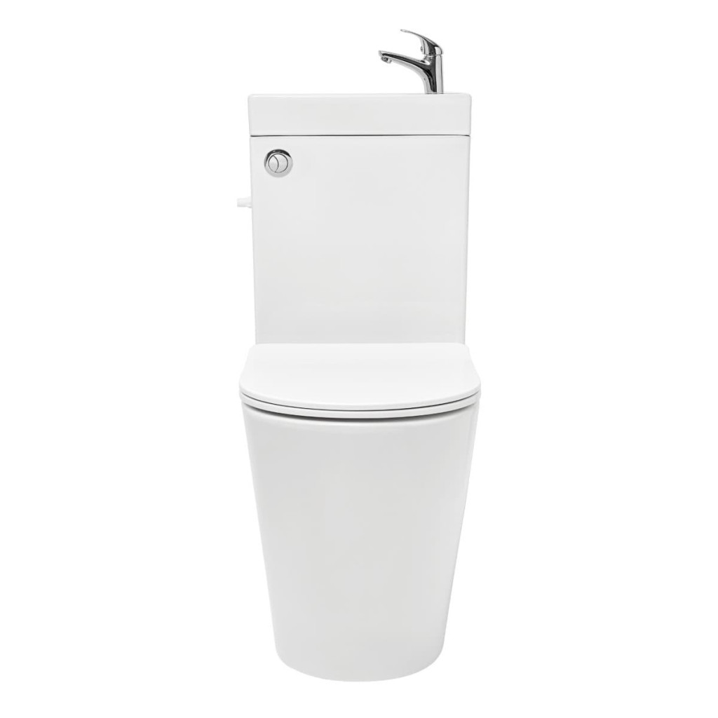 Boční připojení vody je možné z obou stran nádržky, stačí pouze jeden přívod vody pro napouštěcí i umyvadlový ventil. Uvnitř nádržky se nachází rozdvojení, odkud se připojuje umyvadlový ventil. Díky úsporným rozměrům a chytrému řešení je ideální volbou pro malé koupelny, toalety pro hosty nebo rekonstrukce s omezeným prostorem.
