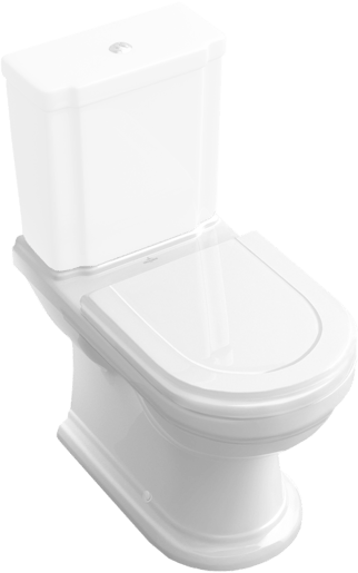 Stojící WC mísa kombi série Hommage se zadním odpadem. Součástí dodávky je upevňovací sady pro skryté upevnění. Barva R1 bílá Ceramicplus.