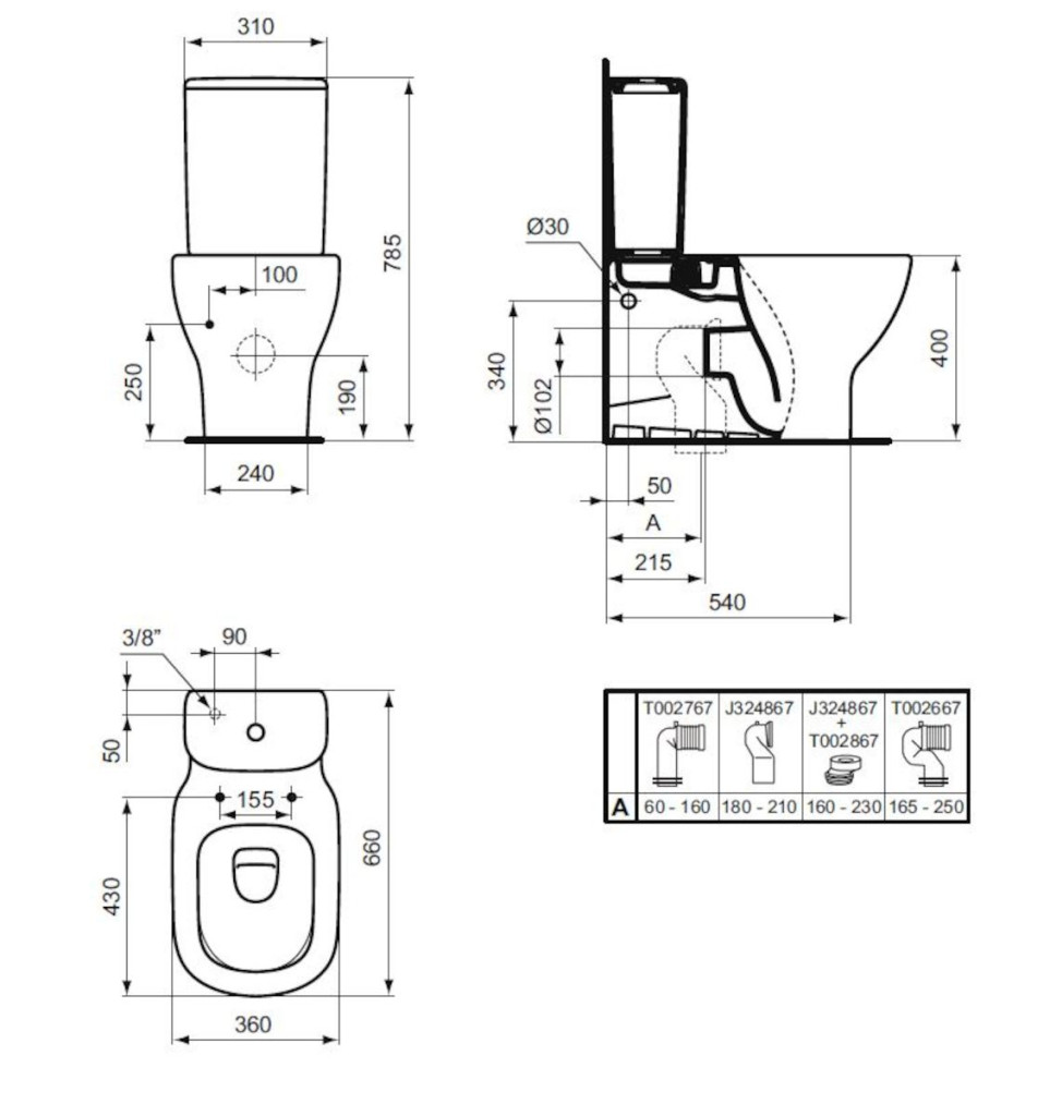 Wc pouze nádrž Ideal Standard Tesi T356801