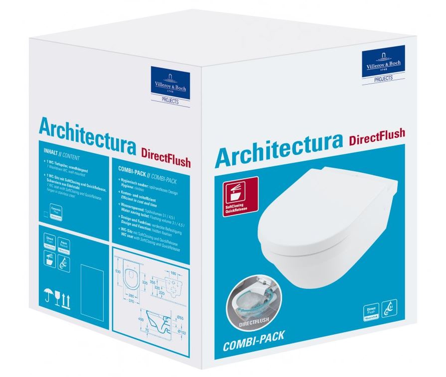 Vyrobeno z odolné sanitární keramiky odolné proti nárazu a poškrábání . Konstrukce bez okrajů pro přesný průtok vody bez rozstřiku a dokonalé splachování (DirectFlush) Úspora vody díky snížení objemu splachování o 1,5 litru při stejném výkonu (AquaReduct)