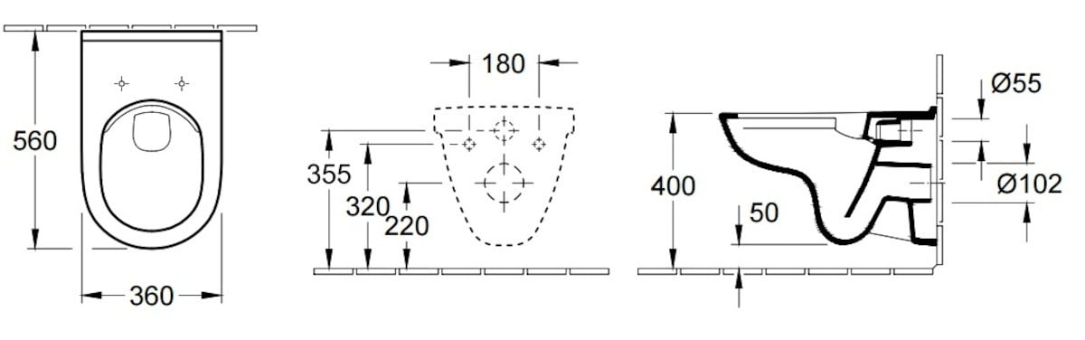 Dotaz na produkt Na splátky ještě dnesZávěsné WC Villeroy Boch se sedátkem s otevřeným okruhem splachování.
