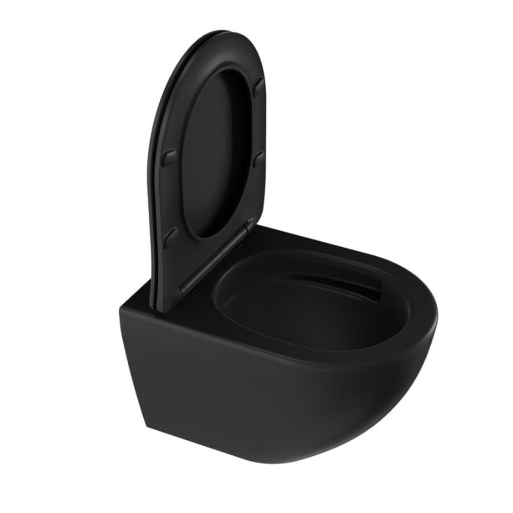 Wc s prkénkem softclose závěsné vírové SAT Fusion černá mat zadní odpad SATFUS010RTORPBKM
