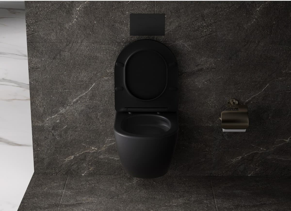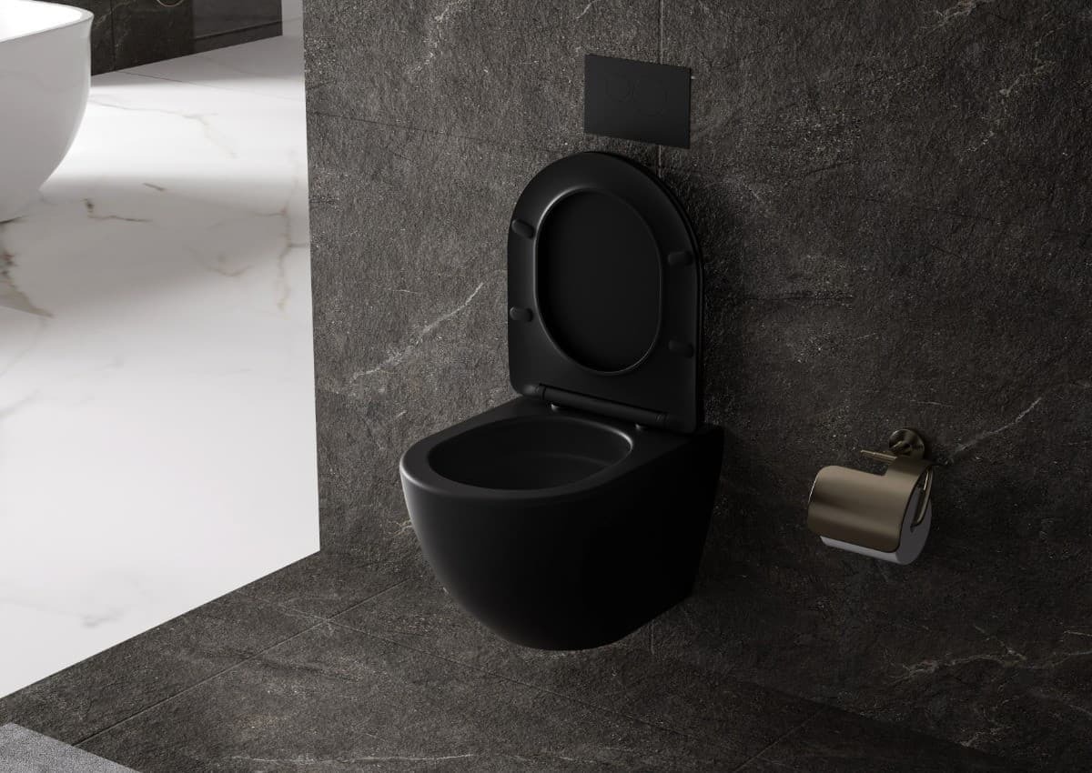 ÚvodBytové doplňkyZáchodyWc s prkénkem softclose závěsné vírové SAT Fusion černá mat zadní odpad SATFUS010RTORPBKM