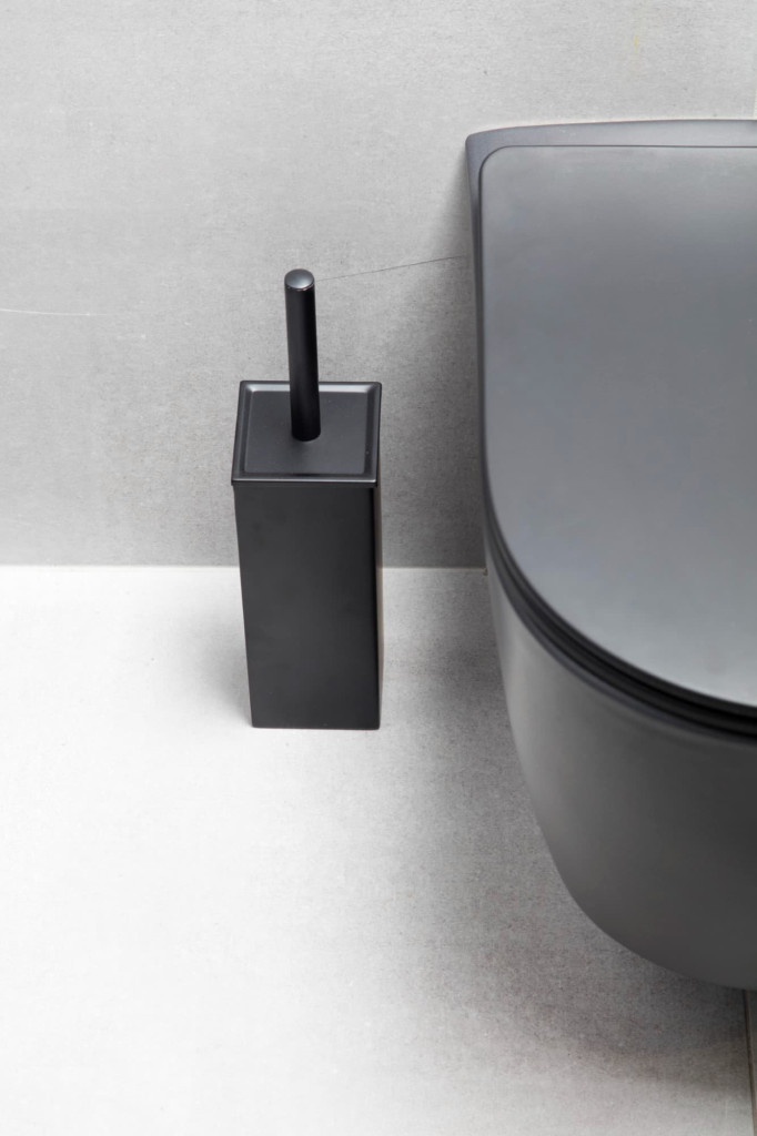 PARAMETRY:Balení: 1 pcs ksHmotnost balení: 0,78  kgDruh výrobku: WC štětka Materiál: nerez Barva popisná: černá Barva základní: černá Design: hranatý Typ: volně stojící lesk/mat: mat Šířka: 9 ...