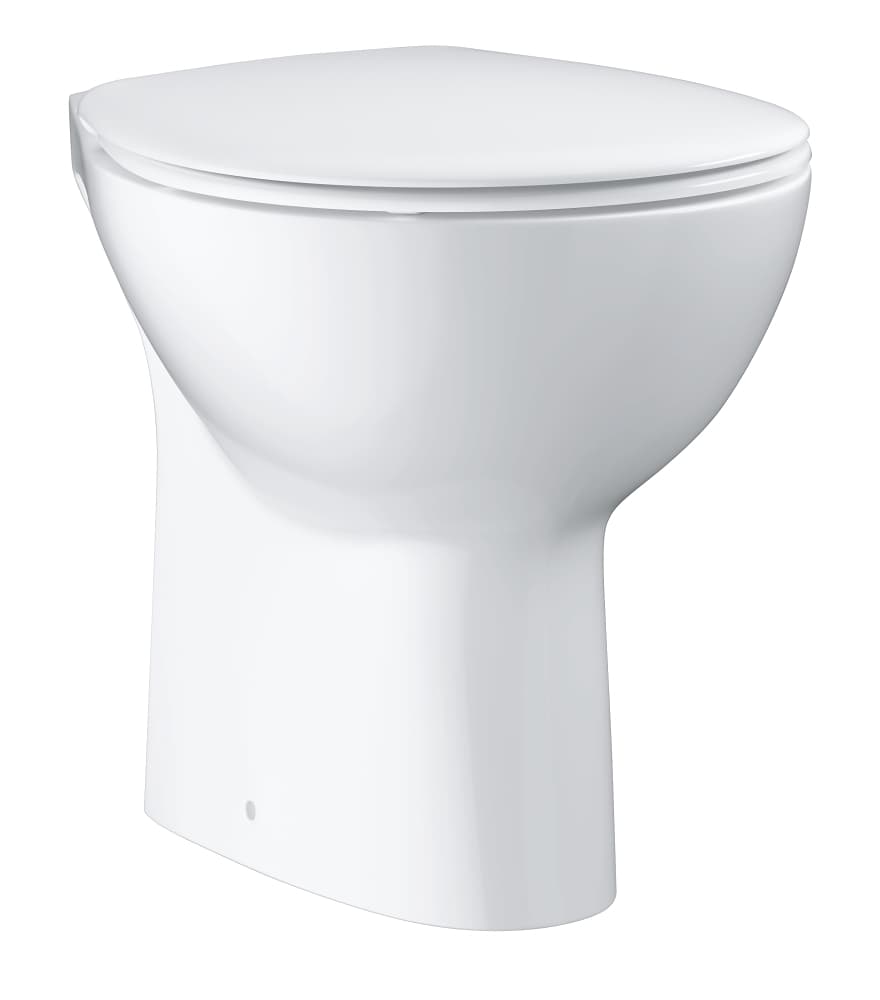 Podlahové WC GROHE Bau Ceramic, bezokrajová konstrukce, skleněná keramika, Alpine White, objem spláchnutí 6/3 l, svislé odpadové koleno, včetně montážní sady