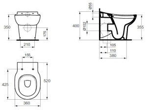 PARAMETRY:Hmotnost balení: 19,60  kgDruh výrobku: WC Materiál: keramika Barva popisná: bílá Barva základní: bílá Výbava: bez prkénka Typ: stojící lesk/mat: lesk Šířka: 36  cmVýška: 40  cmHloubka: 52 ...