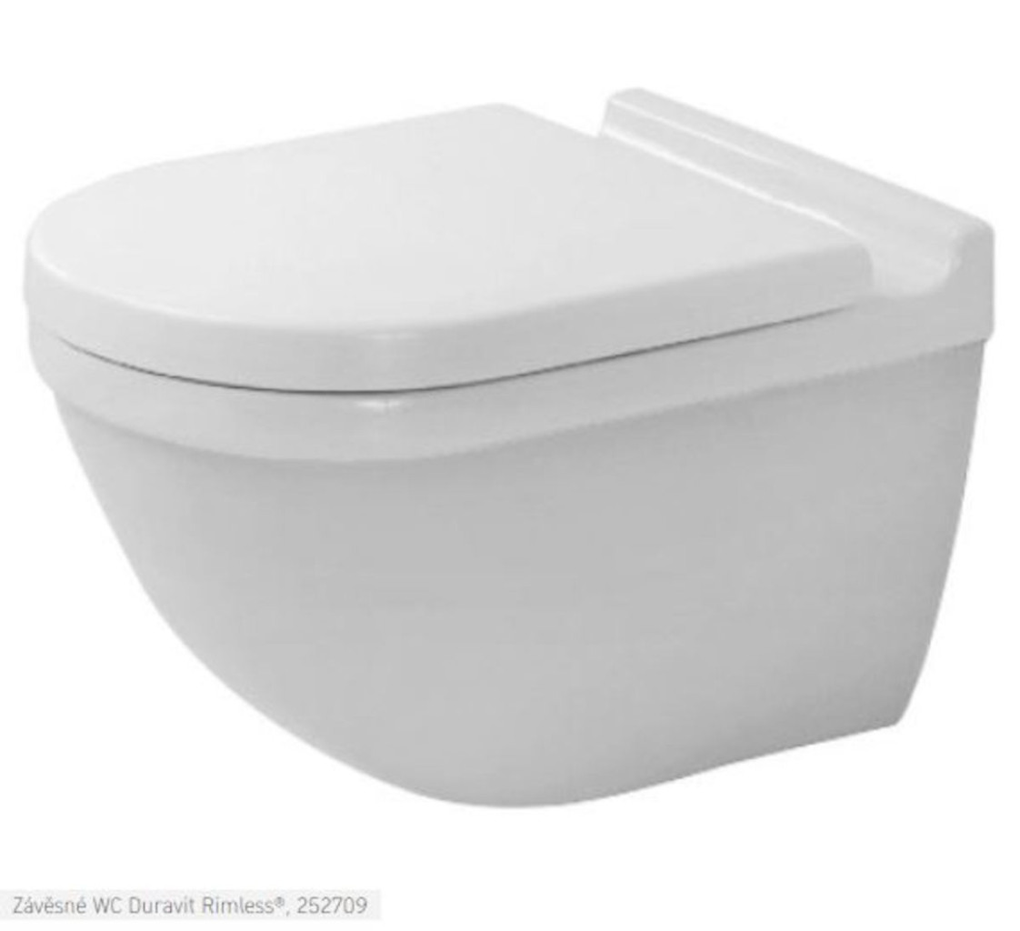 Závěsné WC Duravit Rimless s hlubokým splachováním, s antibakteriálně působící glazurou HygieneGlaze. Včetně upevnění Durafix.