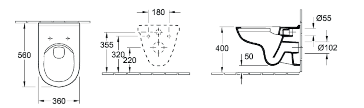 Dotaz na produkt Na splátky ještě dnesZávěsné WC Villeroy Boch s otevřeným okruhem splachování. Otevřený okruh umožňuje rychlejší údržbu toalety a oproti klasickému uzavřenému okruhu redukuje množství bakterií v toaletě.Sedátko ani zvukoizolační vložka nejsou součástí dodání.