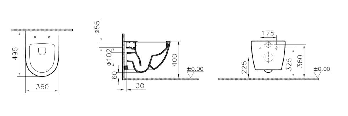 Zkrácená verze závěsného WC VitrA se skrytým uchycením a otevřeným okruhem splachování. Součástí dodávky není WC sedátko. Kompatibilní se všemi podomítkovými nádržemi z nabídky SIKO a sedátky EASY2244/2240.
