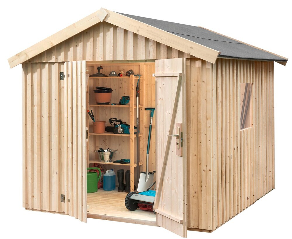 Dotaz na produkt Na splátky ještě dnesZahradní domek WEKA 349 ve švédském stylu dokonale doplní vaši zahradu. Snadno se sestavuje a nabízí dostatek úložného prostoru, velké dvojité dveře umožňují snadné uložení a manipulování se zahradní technikou, nářadím, jízdními koly a dalšími potřebnými nástroji. S tímto domkem v tradičním švédském stylu obohatíte svou zahradu o styl a praktičnost. Domek obsahuje kvalitní sadu klik s profilovým cylindrickým zámkem, který zajistí bezpečnost. Základna domku (bez přesahu střechy) je 240 x 246 cm, podlaha z masivního dřeva o tloušťce 18,5 mm a sedlová střecha z masivního dřeva o tloušťce 19 mm zajišťují domku potřebnou stabilitu. Dřevo pochazí z udržitelného lesnictví (certifikáty PEFC a FSC). Okna jsou vyrobeny průhledného plastu. Maximální zatížení střechy 75 kg/m2. Součástí domku není střešní krytina (plocha střechy je 8,4 m2), lze zakoupit samostatné střešní šindele (číslo produktu a počet kusů: 100.1016.30.2 - 4ks), případně zakoupit střešní krytinu dle vlastního výběru. Podlaha domku je postavena na dřěvěných trámech(4 x 4 cm), díky tomu nedochází k degradaci (vlhkosti) a zvýší se tak její životnost. Všechny produkty německé společnosti WEKA jsou konstruovány a vyráběny v Německu s dlouhodobou tradicí přes 30 let. WEKA poskytuje prodlouženou záruku 5 let na všechny dřevěné díly výrobku.