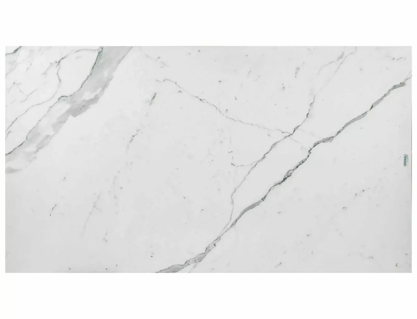 deska: tvrzené sklo + italská keramika, mramorový efekt, rám: kov, barva: bílá / matná černá
