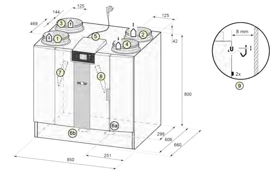- vybavená vysoce účinným plastovým křížovým protiproudým výměníkem tepla a EC ventilátory