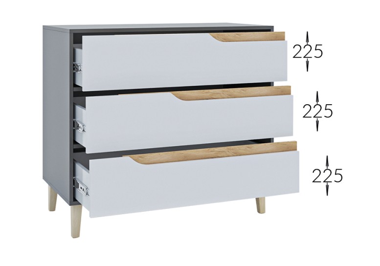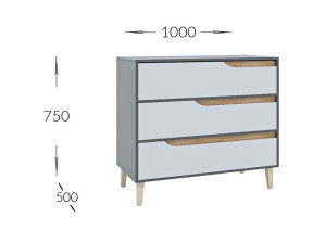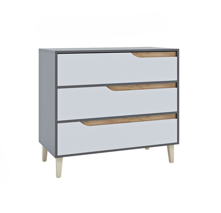 Zásuvková komoda nabízí bohatý úložný prostor v podobě tří zásuvek. Je ideální do studentských pokojů, obývacího pokoje nebo ložnice.