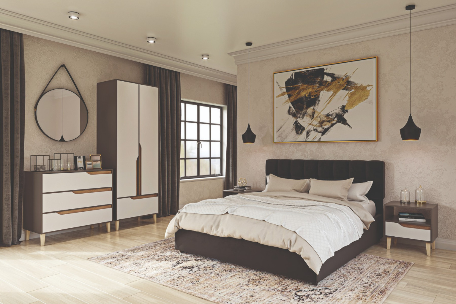 Dotaz na produkt Na splátky ještě dnesKolekce nábytku se vyznačuje pohodlným a spolehlivým nábytkem do ložnice, obývacího pokoje či studentského pokoje. Nábytek ze sektoru je vyroben z kvalitního LTD materiálu, je doplněn o dřevěné nožičky L-150 mm, frézované rukojeti a má hladkou povrchovou úpravu, která je jednoduchá na údržbu.