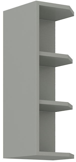 Dotaz na produkt Na splátky ještě dnesOtevřený horní roh KARMEN GREY na pravou stranu linky vyrobený z kvalitního lamina. Korpus je v barvě šedá. Rozměry regálu - šířka 30 cm, výška 71,5 cm, hloubka 30 cm. Tento roh vytvoří elegantní zakončení vaší kuchyňské linky. V naší nabídce naleznete další výběr skříněk k sestavení celé kuchyně.