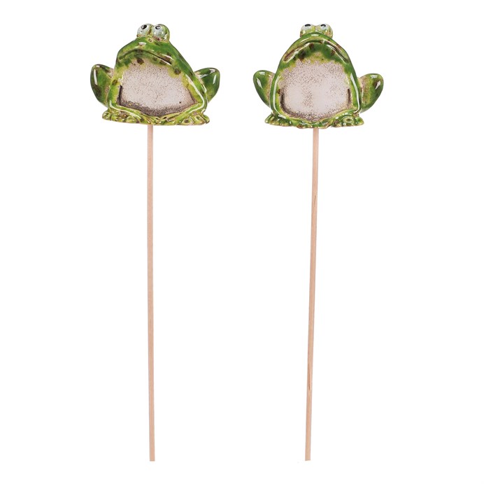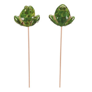 Dotaz na produktKeramická žába v zeleném provedení je umístěná na dřevěné špejli, která umožňuje snadné zapíchnutí do květináče nebo zahradního záhonu. Díky dvěma variantám tvaru přináší dekorace hravý a přírodní prvek do interiéru i exteriéru. Povrch s jemnou patinou dodává výrobku rustikální vzhled a podtrhuje jeho dekorativní charakter. Ideální pro oživení květinových aranžmá, truhlíků či zahradních dekorací.