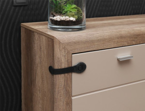 Zámek zásuvky byl navržen tak, aby dospělý měl snadný přístup k obsahu nábytku, aniž by musel odstranit ochranu. Stačí stisknout pojistku na správném místě a klip se otevře . Po vyjmutí potřebného příslušenství ze skříňky/zásuvky stačí zavřít zámek zásuvky a bude opět fungovat. Ochrana pro skříně je velmi estetická - při montáži na světlý nábytek nebudí pozornost.