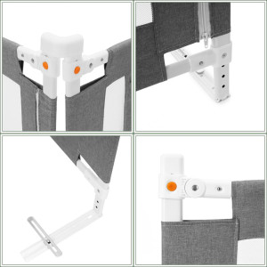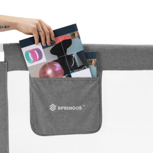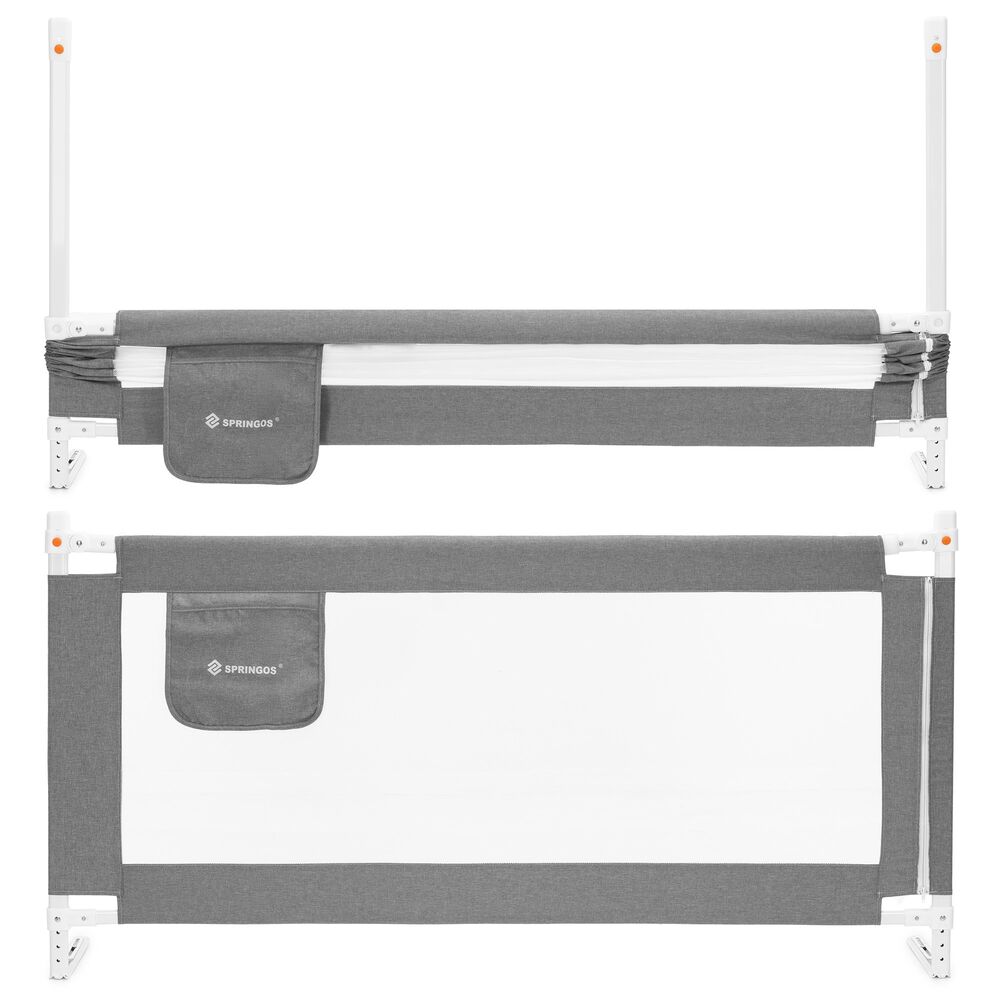 Zábrana na postel 160 cm SPRINGOS HA7527 šedá je ideálním řešením pro rodiče, kteří chtějí zajistit ochranu dítěte před pádem z postele během spánku i odpočinku. Konstrukce je tvořena pevným a stabilním rámem z nerezové oceli, který zaručuje spolehlivost a dlouhou životnost. Odolná nylonová síťovina s dobrou viditelností umožňuje mít dítě stále pod dohledem a zároveň podporuje cirkulaci vzduchu.