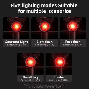 Světlo je vybaveno inteligentním senzorem vibrací a brzdění, který automaticky reaguje na pohyb kola i zpomalení. Funkce automatického zapnutí a vypnutí šetří energii a zároveň zajišťuje, že budete vždy dobře viditelní bez nutnosti manuálního ovládání.