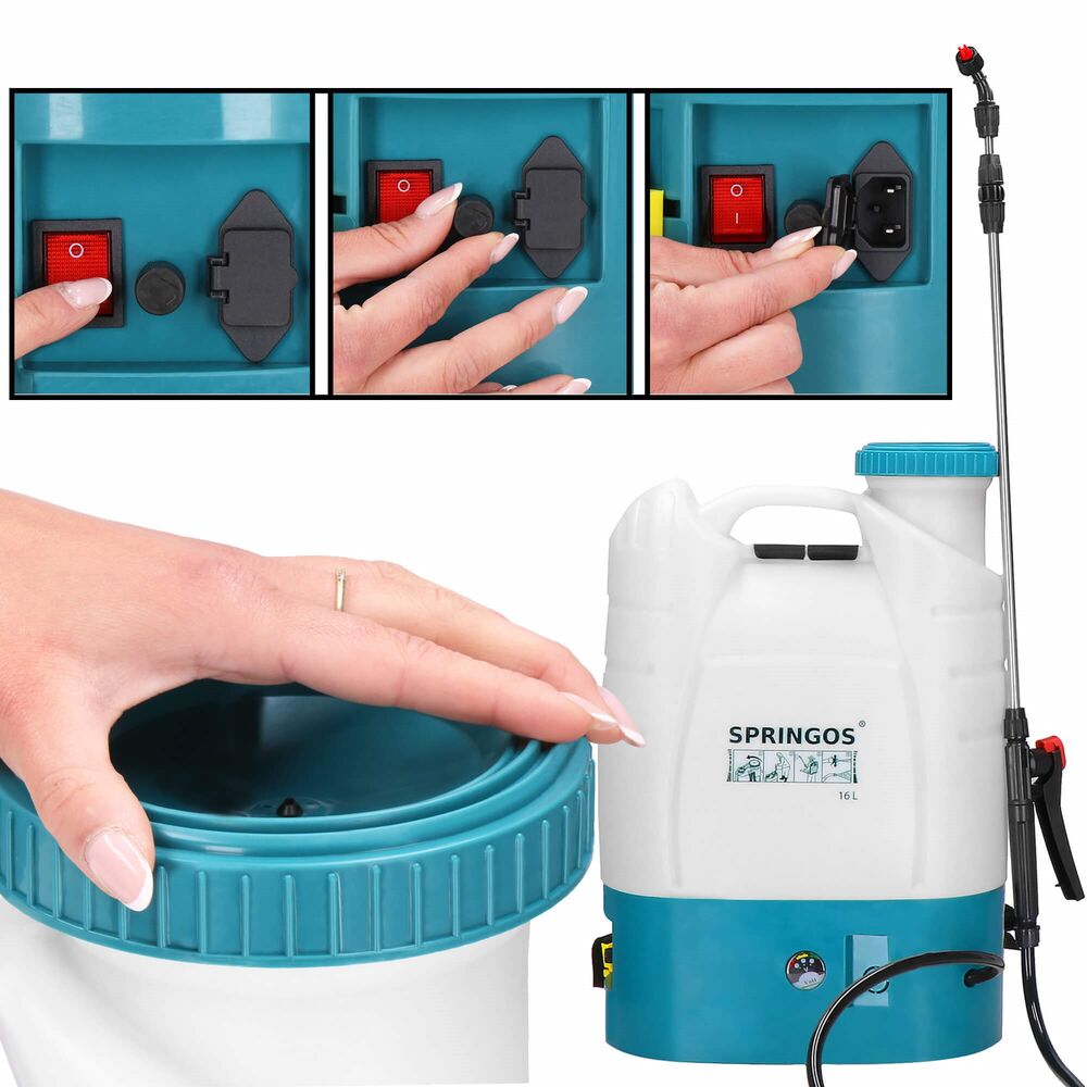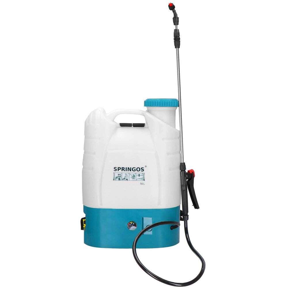 Zahradní aku postřikovač zádový 16L SPRINGOS FOGGO je ideálním pomocníkem pro efektivní a pohodlnou aplikaci postřiků na zahradě, ve sklenících či na polích. Díky velké kapacitě 16 litrů umožňuje dlouhodobou práci bez nutnosti častého doplňování tekutiny.