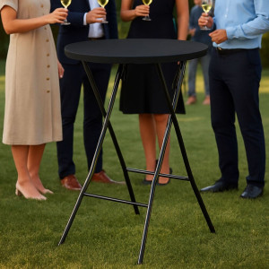 Praktický barový stůl pro venkovní i vnitřní použití. Slouží k pohodlnému servírování nápojů a občerstvení při oslavách, zahradních párty nebo společenských akcích. Nabízí stabilní konstrukci a možnost složení pro snadné uskladnění.