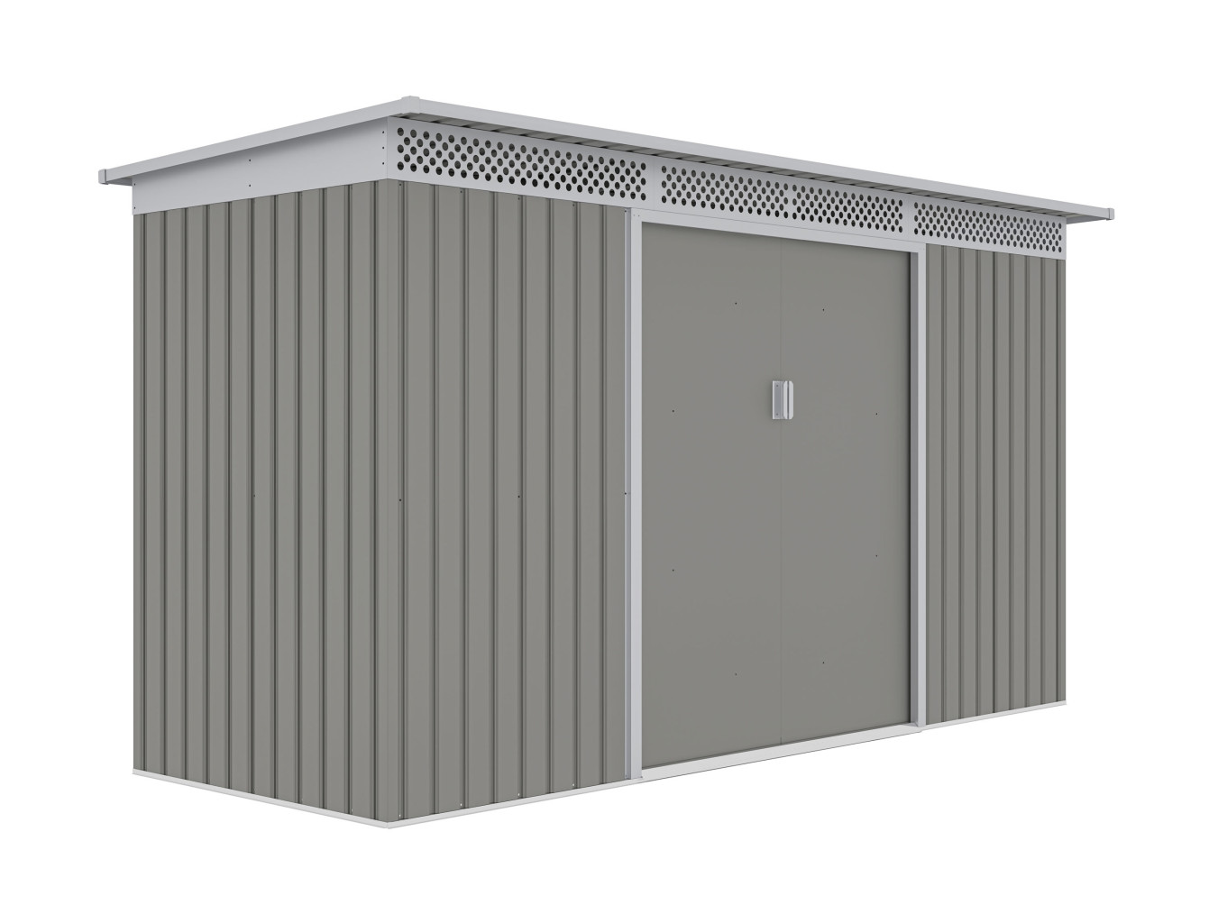 Zahradní domek GRAH 483 má dvoukřídlé dveře o celkové šířce 138 cm. Vstup do domku je tak opravdu pohodlný, i když nesete nebo vynášíte objemnější věc.